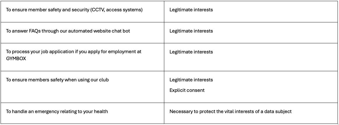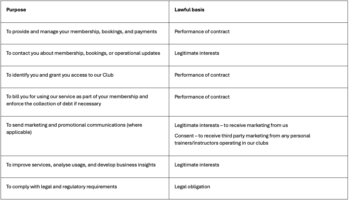 We process your personal data for the following purposes and under the lawful bases permitted by the UK GDPR: